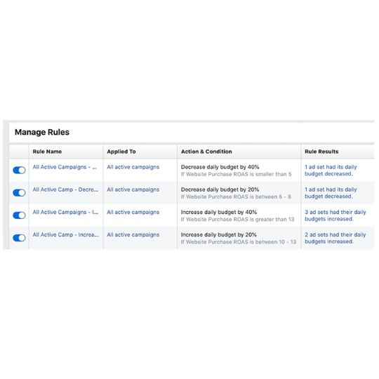 A heavy advertising spend on BFCM can cause drastic fluctuations in ROAS. And given the short time period, we needed to ensure we didn’t miss out on potential incremental sales. So we implemented rules-based budgeting automation to scale their spend up or down dynamically. This automation ran on an hourly basis.