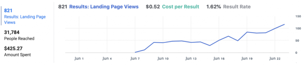 Increase in landing page views for one advertisement due to the awareness strategy optimization