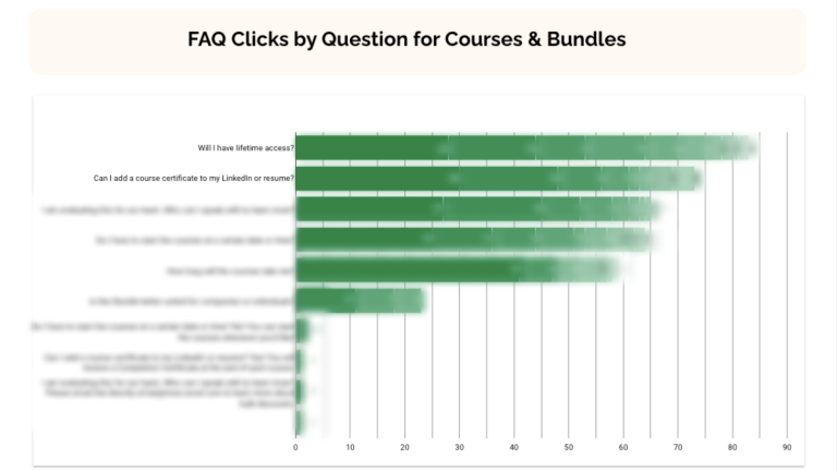 We also needed to provide insight into how to improve those metrics through segmented reports such as funnel drop-offs, on-site search terms, and course completion rates.