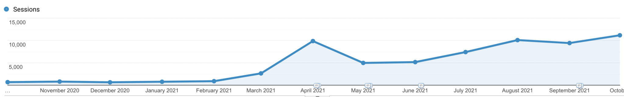 Force engaged Flywheel in August 2020, tasked with increasing organic traffic through non-branded searches. Our first month of strategy implementation was October 2020.