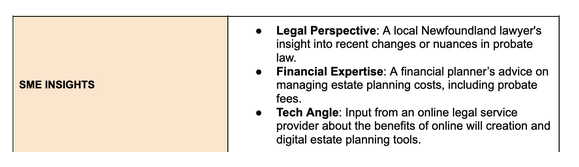 We also collaborated with Willful’s Subject Matter Experts (SMEs): lawyers and estate planning professionals. We used AI (ChatGPT) to assist with developing insights in content briefs to prioritize E-E-A-T from the inception of each article.